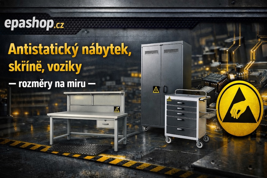 V naší nabídce najdete vše potřebné pro ESD pracoviště — od antistatických podlah, pracovních stolů a uzemnění pracoviště přes ochranné pomůcky pro pracovníky (obuv, oděvy, rukavice) až po skladovací řešení, balicí materiál a měřicí přístroje. Součástí naší nabídky je také pájecí a odsávací technika, bez které se žádné elektrotechnické pracoviště neobejde. Každý produkt pečlivě vybíráme tak, aby splňoval přísné normy pro ESD ochranu a přinášel vám maximální spolehlivost i komfort při každodenním používání.