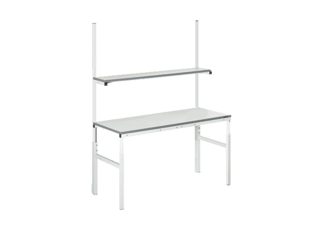 Pracovní antistatický stůl se stavitelnou podnoží je vybaven ESD pracovní deskou o síle 25 mm a jednou policí 1500×300 mm. Konstrukce je lakovaná barvou RAL 7035.